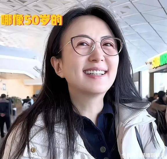 杨童舒的真实模样得靠路人的镜头才能看得出来。50岁的她,看上去笑容满满,精神状态不错,就岁一样。
