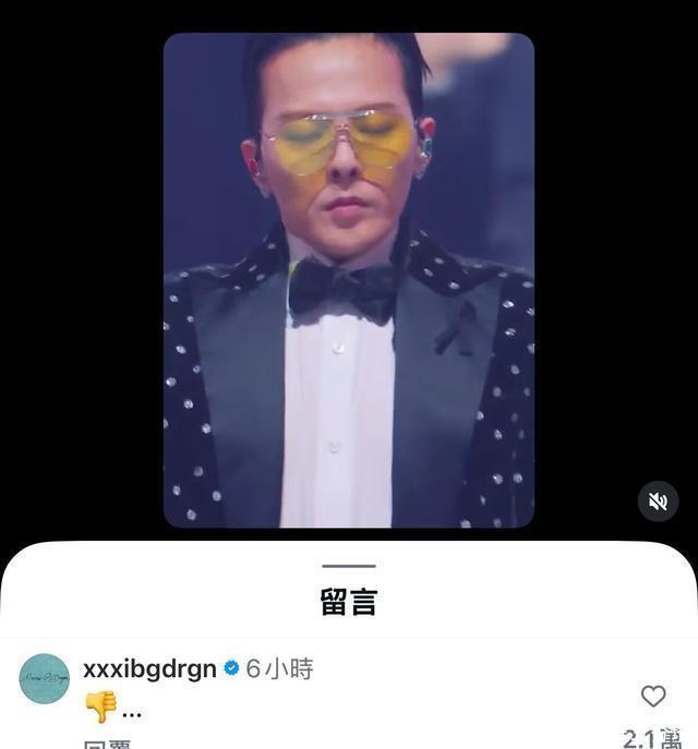 GD表演过程中面露不悦。(图/翻摄自MyVideo) 此外,更有粉丝拍到GD在演唱〈无题〉前,趁着大萤幕正在播粉丝合唱的录音,站在一旁的休息区喝水,没想到主办突然中断这段串场流程,改成播放〈无题〉前奏,让还在喝水的他措手不及,赶紧冲回舞台上,边唱边露出不耐神色,事后更在MAMA官方Instagram贴出一个「倒赞」贴图,暗指主办方的失职。